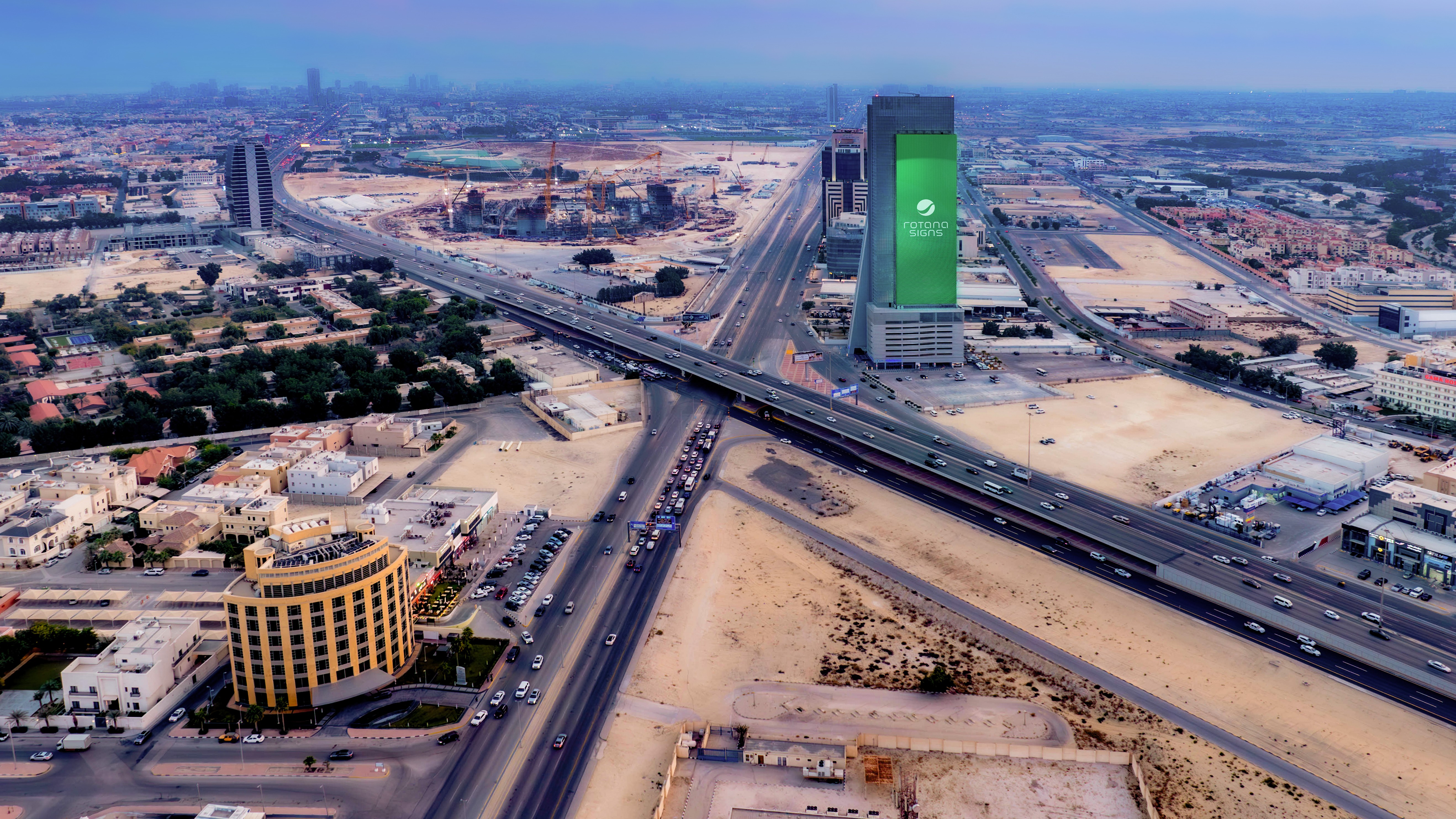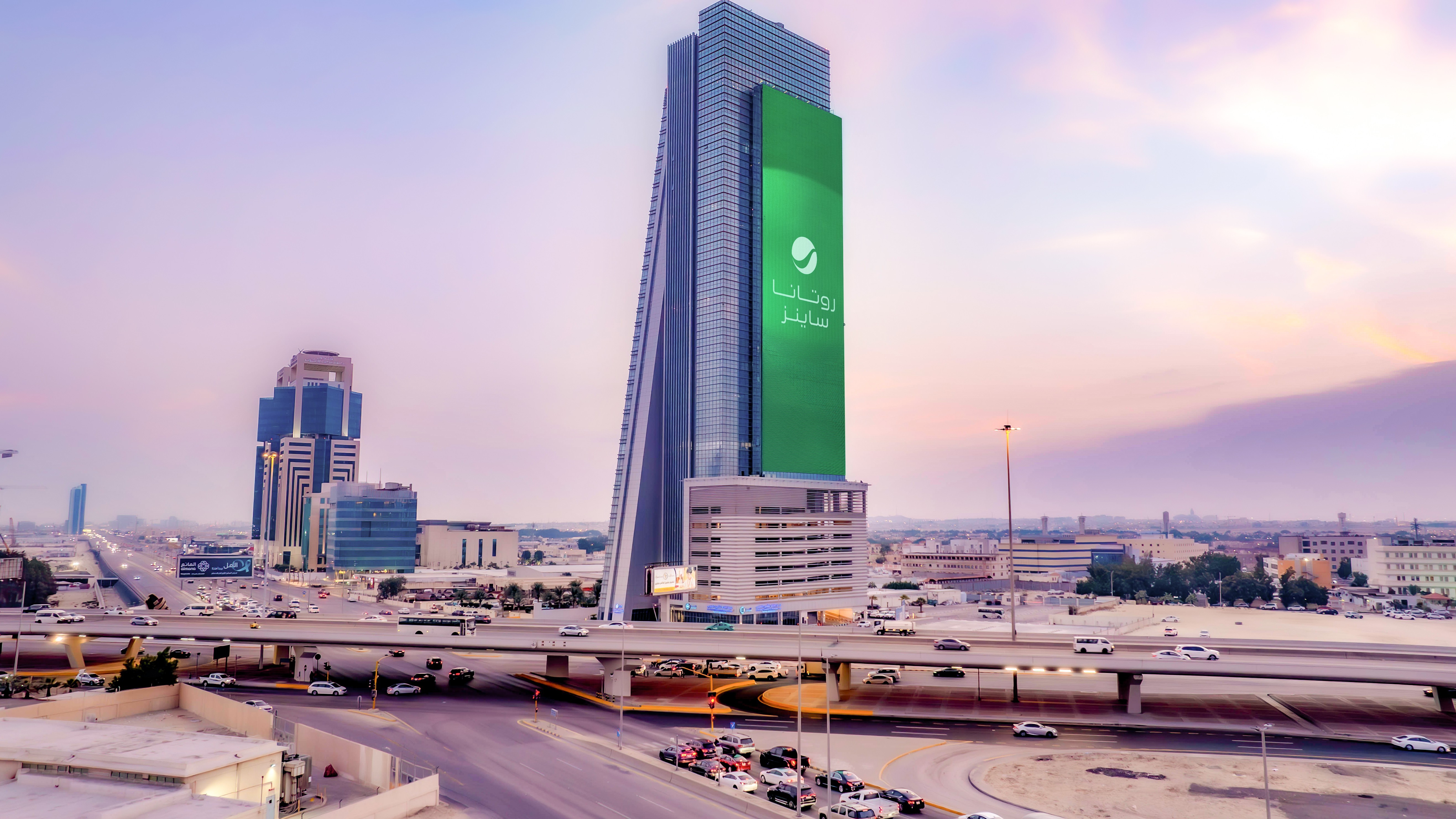 Located in Dhahran, Al Abdulkarim Tower and its impressive 2,700m² Digital Facade is situated at the crossroads of the Dammam Metropolitan Area helping capture attention of northbound and westbound traffic.